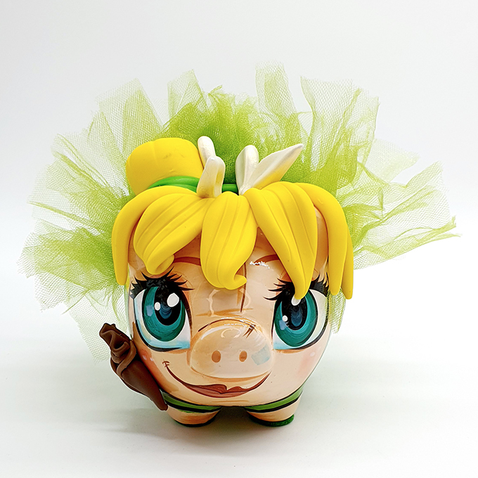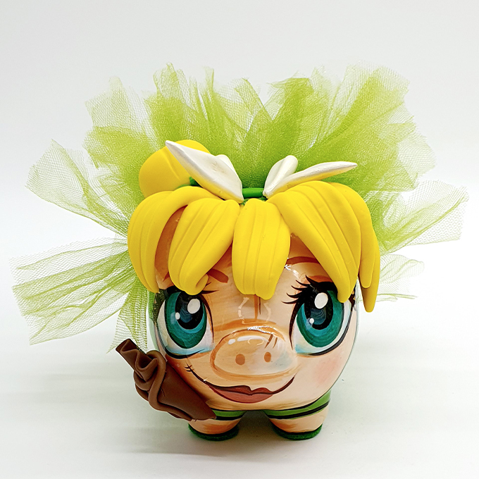 Nuestras huchas de cerámica en forma de cerdito están inspiradas en nuestros personajes favoritos, hechas y pintadas a mano. Además, tienen bonitos detalles de arcilla polimérica para que resulten lo mas bonitas, divertidas y originales posible. ¡¡Y no debes preocuparte por tener que romperla para sacar las monedas!! Todas ellas tienen un tapón el la parte inferior para que las puedas abrir fácilmente sin romperla.