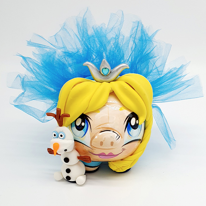 Nuestras huchas de cerámica en forma de cerdito están inspiradas en nuestros personajes favoritos, hechas y pintadas a mano. Además, tienen bonitos detalles de arcilla polimérica para que resulten lo mas bonitas, divertidas y originales posible. ¡¡Y no debes preocuparte por tener que romperla para sacar las monedas!! Todas ellas tienen un tapón el la parte inferior para que las puedas abrir fácilmente sin romperla.