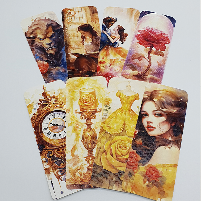 Marcapáginas realizados con papel de acuarela de 300 gr. de grosor. Su tamaño es de 17 cm x 6,50 cm. Se venden por separado o como pack.