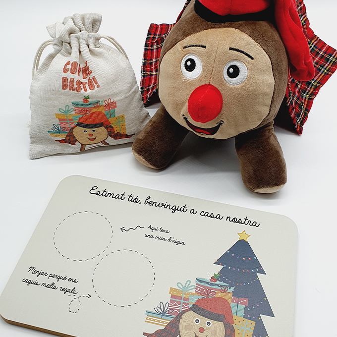 Este nuevo pack incluye nuestro peluche de Caga Tió, una bandejita y una bolsita. Genial para disfrutar de esta divertida tradición con los mas peques.