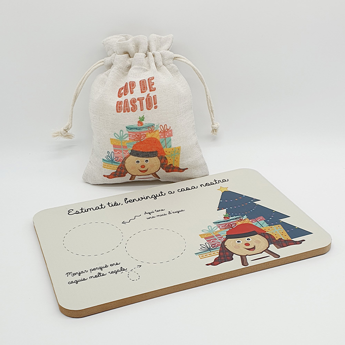 Divertido pack para disfrutar de la Tradición Catalana del Caga Tió. Incluye bandejita y bolsita.
